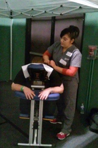 Massage Therapy students at the Carrington College, Sacramento campus recently untangled the knotted, tight muscles of community members who truly needed a break this holiday season. As part of River City Christian Church’s annual “Christmas Mall” gathering, Carrington students took part in a day of pampering and shopping that eased the stress of more than 750 people from local shelters and children from disadvantaged homes. Guests and families were treated to a warm meal, a voucher to shop at the church store for clothing, toys and sports equipment, and spa treatments including haircuts, manicures and chair massages. “It was an honor to be invited to and participate in such a humbling event,” said KellyRae Brown, Massage Therapy[1] Program Director at Carrington College. “I was proud of my students who took part in the day’s activities, especially with it being the weekend before finals.” Brown said the experience of giving massages is even more poignant when working with vulnerable populations like the homeless, who are often overwhelmed with the stresses of daily survival. “The healing quality of this interaction can stimulate hope as well as the motivation to carry on in the face of what can feel like a never-ending struggle,” she said.