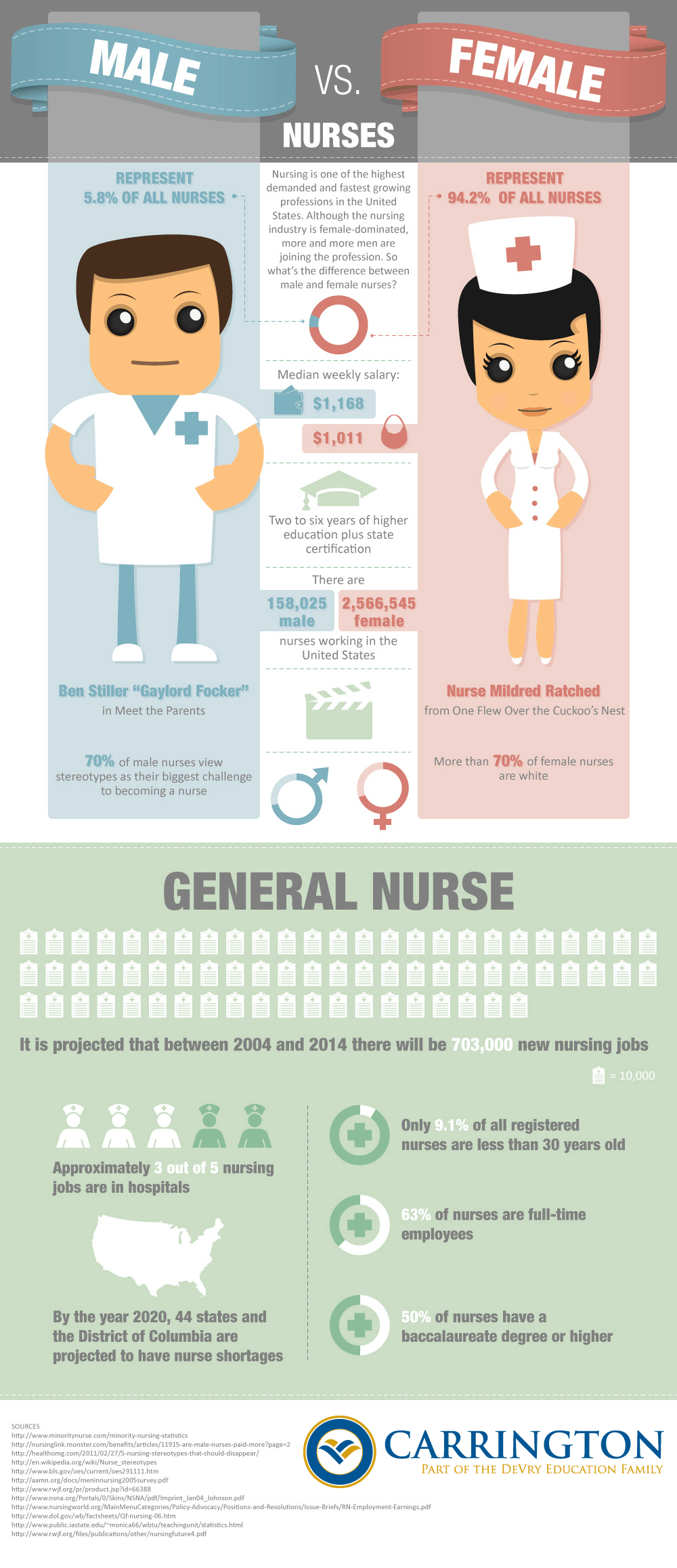 Nursing is one of the highest demanded and fast growing professions in the United States. Although the nursing industry is female-dominated, more and more men are joining the profession. So what’s the difference between male and female nurses? (click here to enlarge)